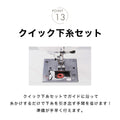基本押え(A)/ ファスナー押え(B)/ 裁ち目かがり押え(C)/ ブラインドステッチ押え(D) / 上送り押え(N)/ パッチワーク押え(P)/ オープン押え(O)/ キルト押え(Q)/ ボタン穴かがり押え(E)/ 落しぬい押え(R)/ 手動ボタン穴かがり押え(I) / スムース押え(T)/ ボビン(4個) 針セット HA×1:11番(1本):14番(1本):16番(1本)ニット :11番(1本)/ 2本針/ 棒定規/ 補助糸立棒/ はと目パンチ/ 専用ドライバー リッパー(糸ほどき)/ 掃除用ブラシ/ 糸巻き当て座(大)/ 糸巻き当て座(中)/ 糸巻き当て座(小)/ フットコントローラー/ 膝上げレバー/ ワイドテーブル/ 取扱説明書/DVD